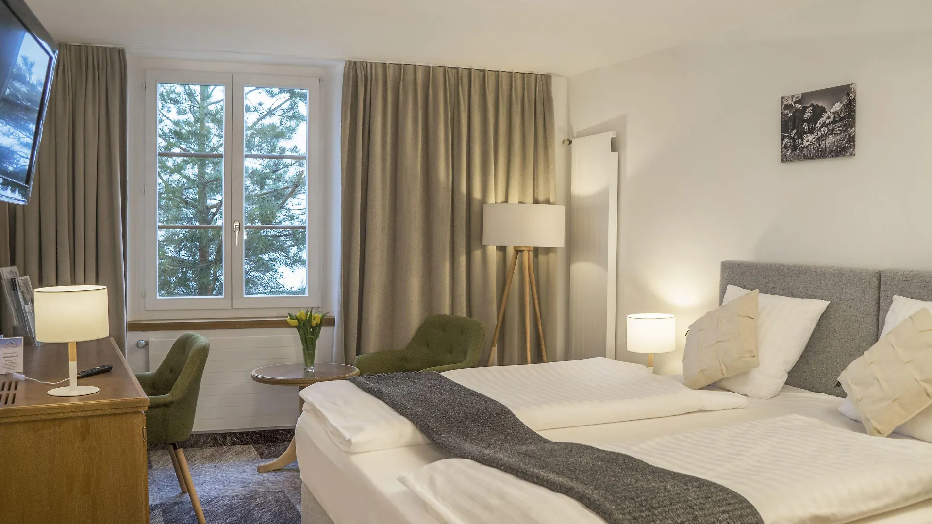 The 14 rooms at this Leukerbad hotel comprise a balcony. They are appointed with carpeted flooring, soundproof windows. Offering such amenities as hairdryers and towels, the bathrooms also include a separate toilet and a shower.